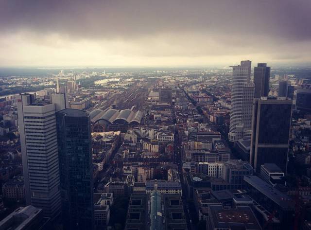 Clouds in #Frankfurt. The view on the train station from the #maintower #bahnhof #germany #cityscape Also available at Instagram http://ift.tt/2yJT0QE